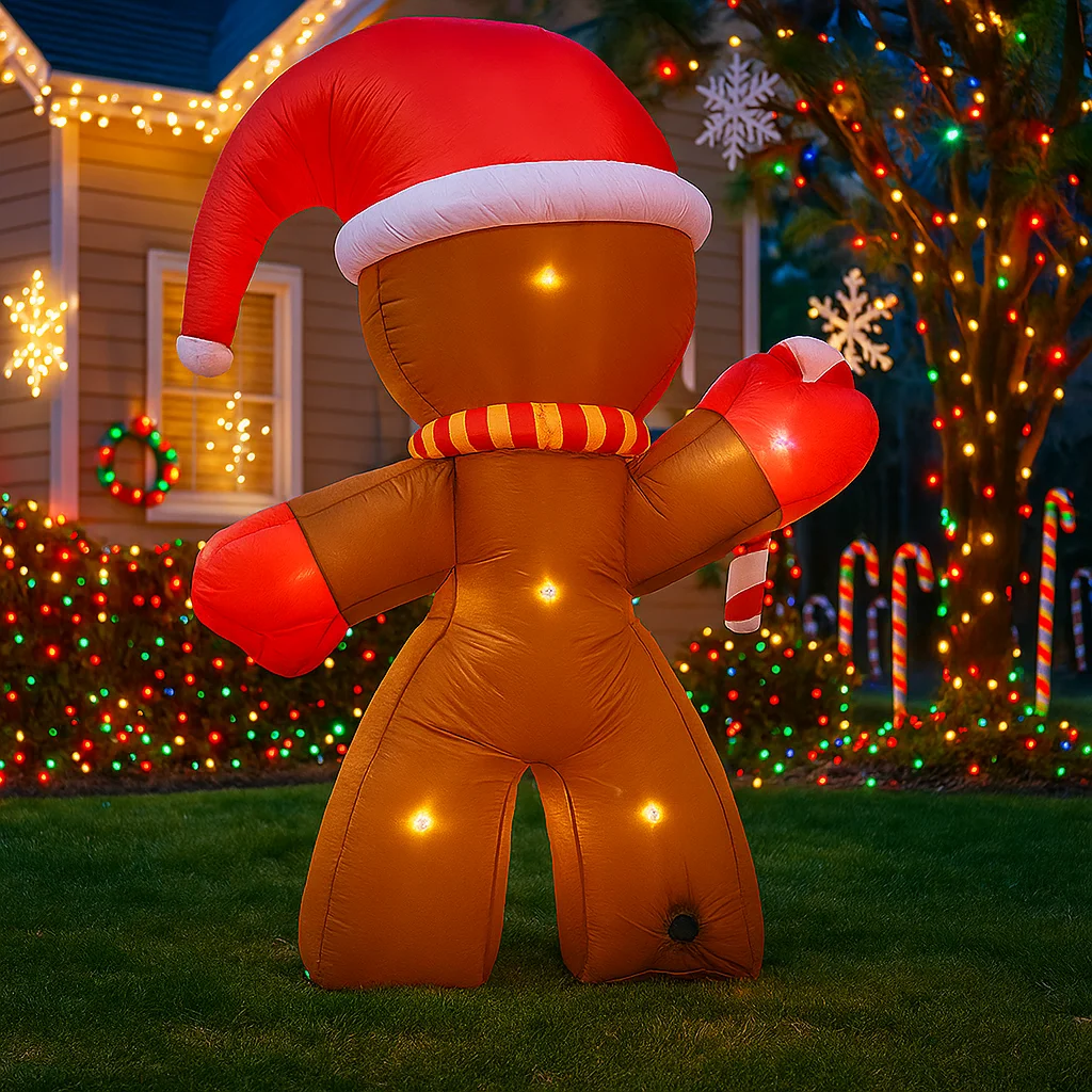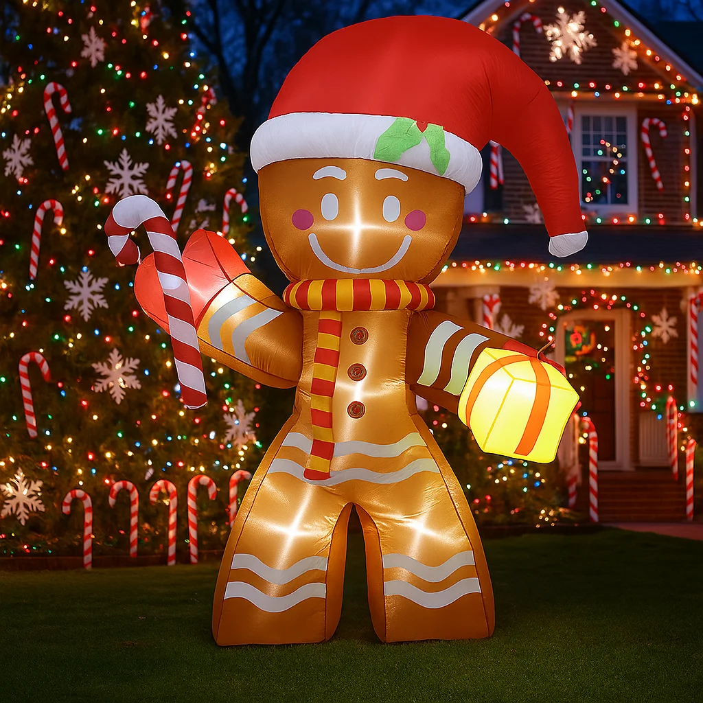 2.4M/7.8FT Gingerbread Man Candy Cane Christmas Inflatable Model Decoration LED Lights Outdoor Holiday Decor Home Yard Party Toy