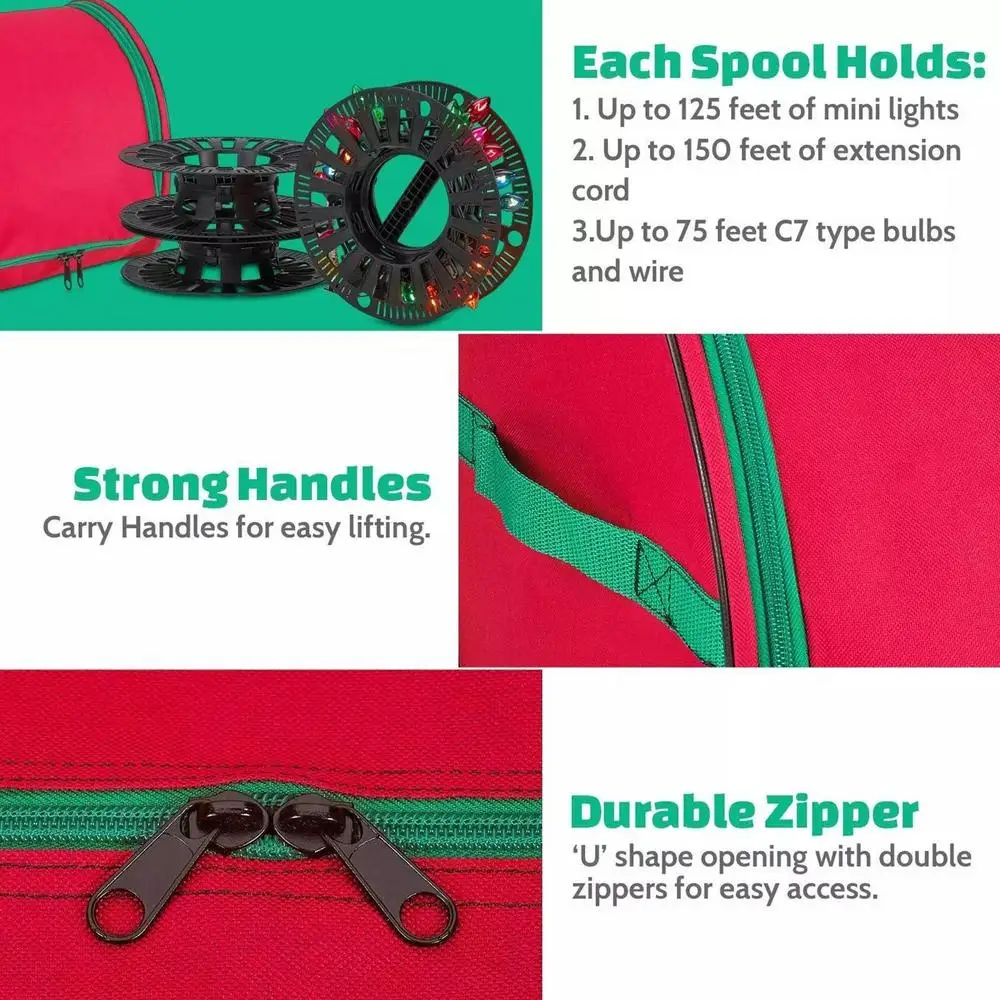 1.Not Easy to Damage: Made with thicker Oxford cloth, this Christmas light organizer provides perfect protection from punctures, tears, and abrasions. Trust this high-quality material to keep your decorations safe and secure
