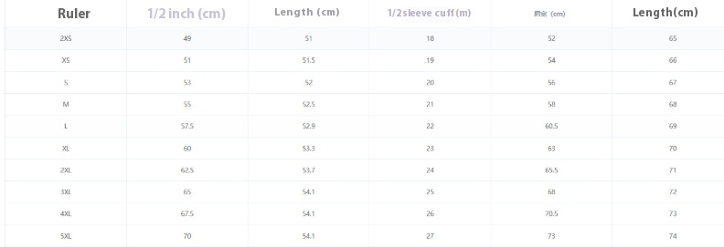 Size: 2XS,XS,S,M,L,XL,2XL,3XL,4XL