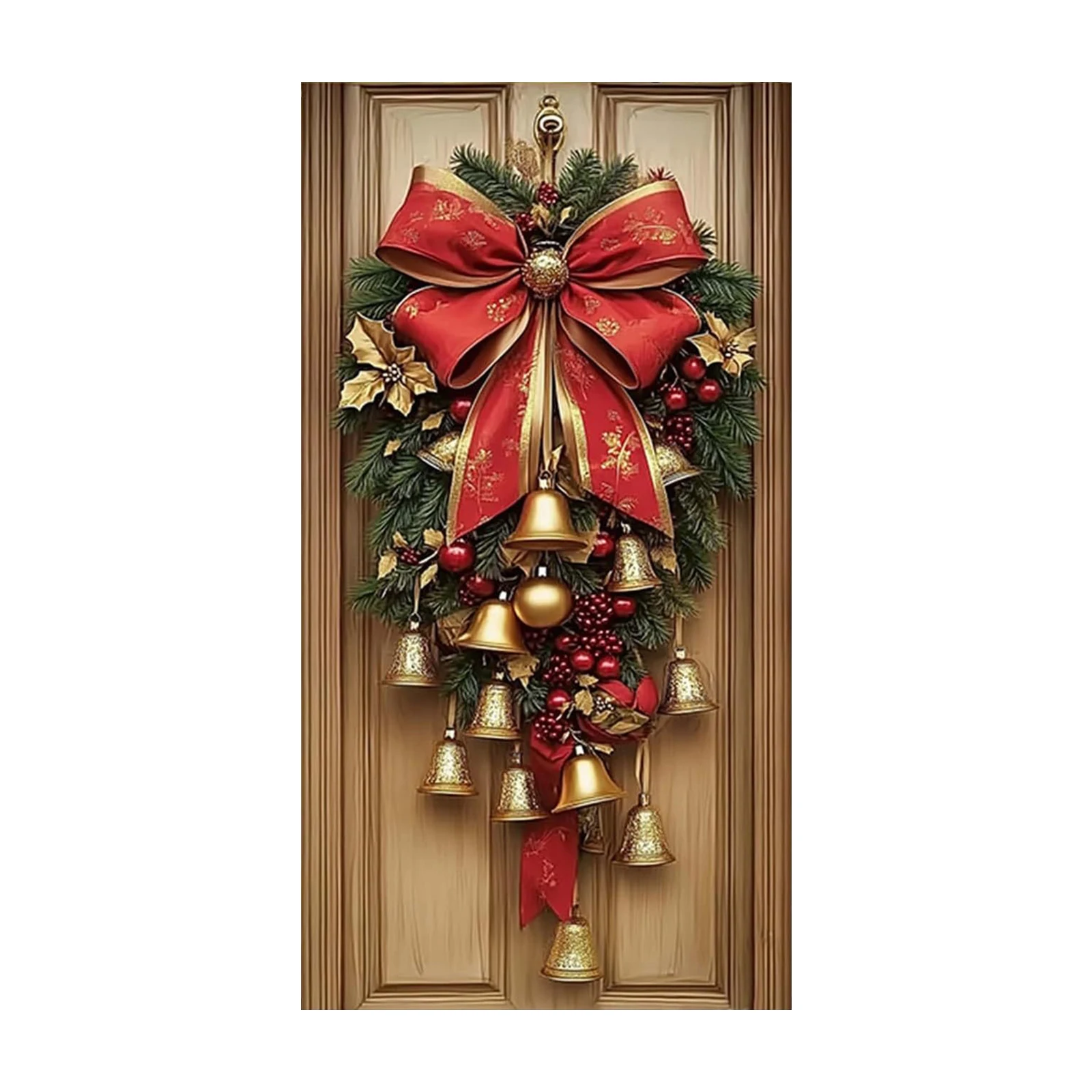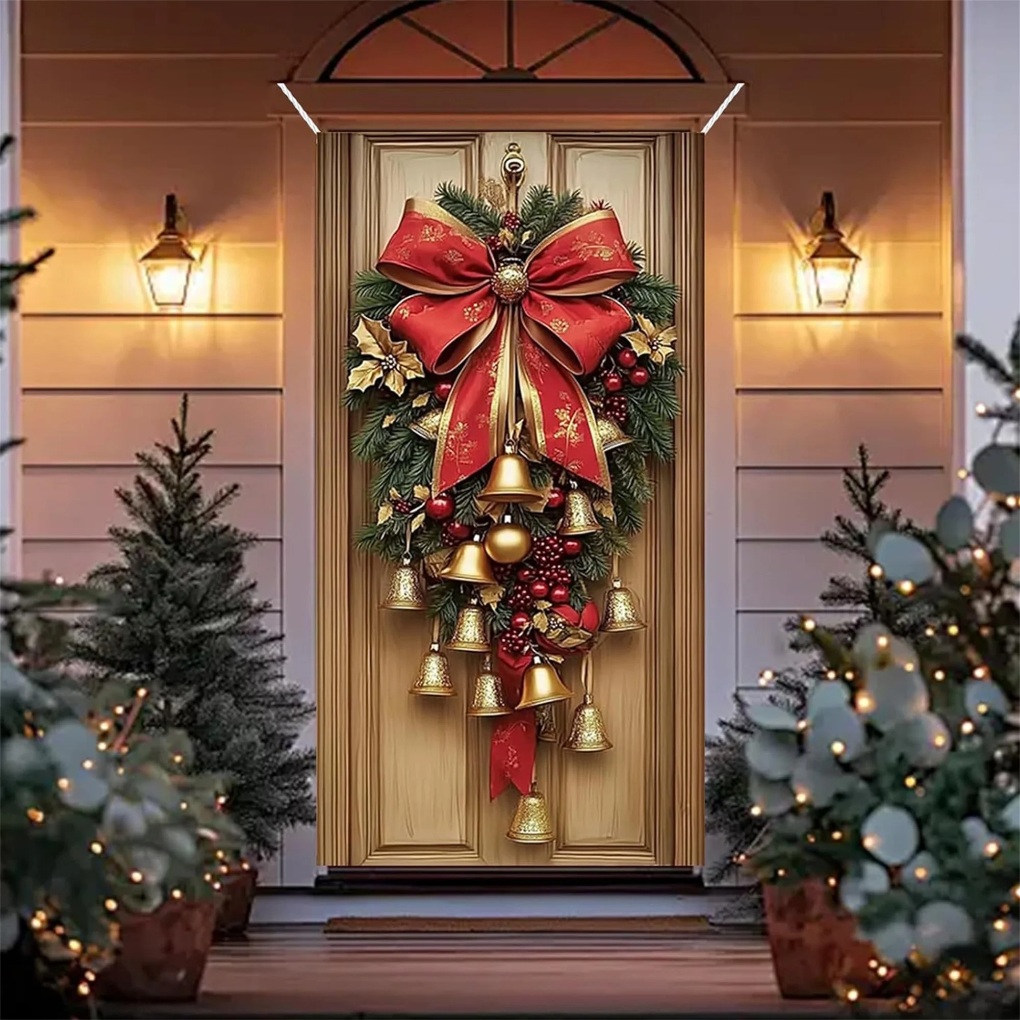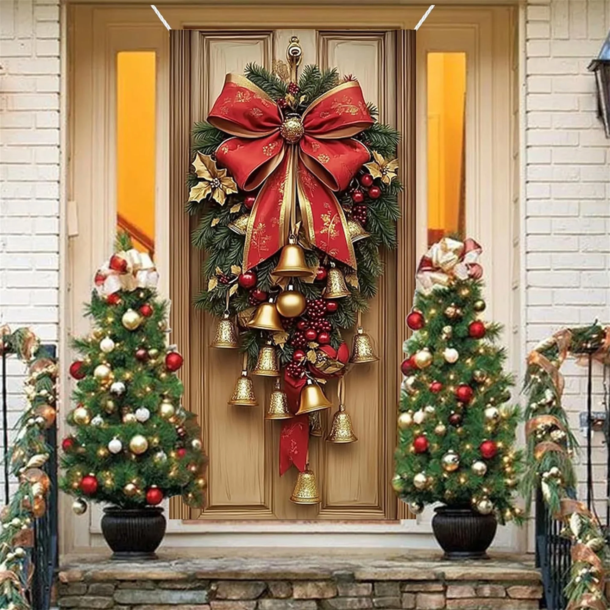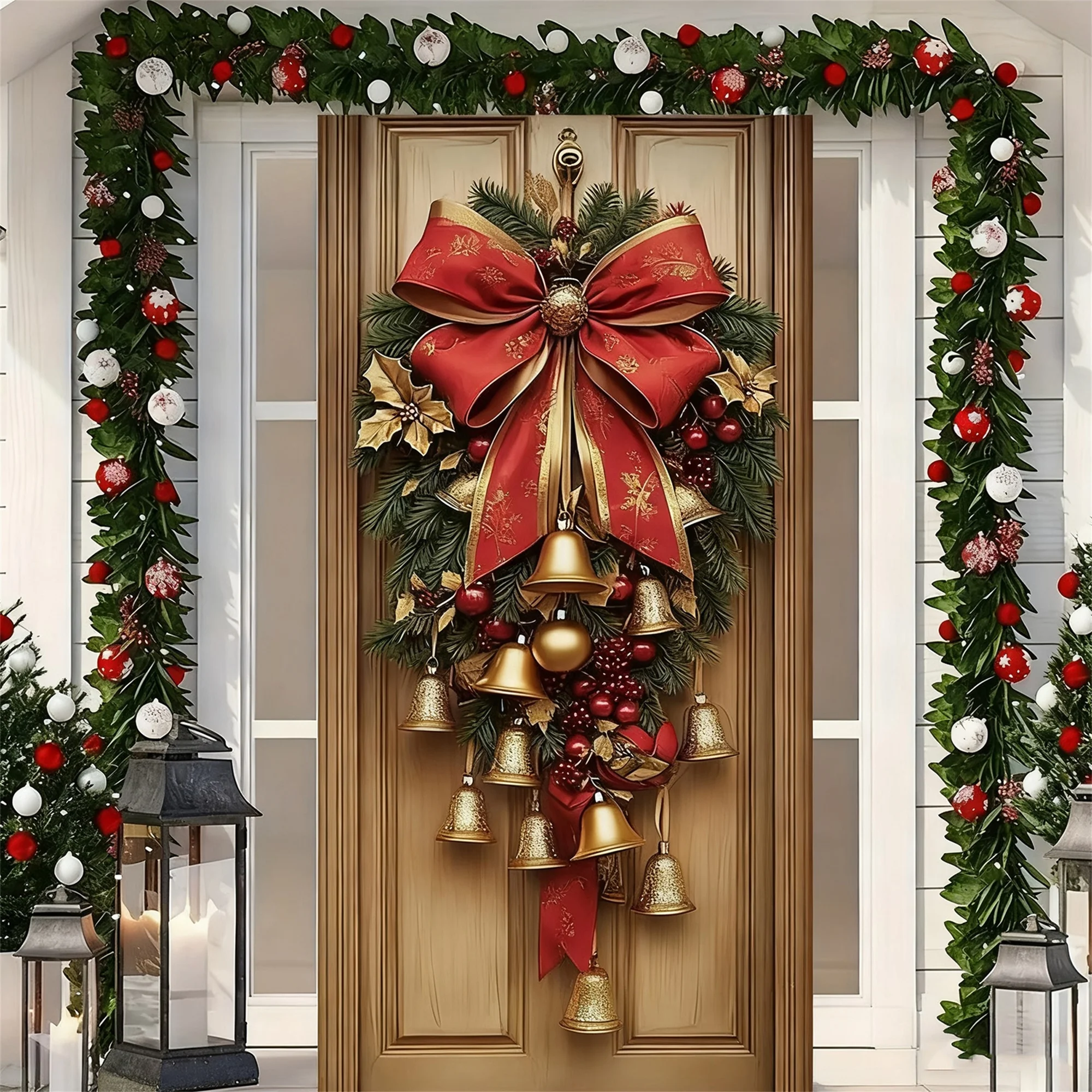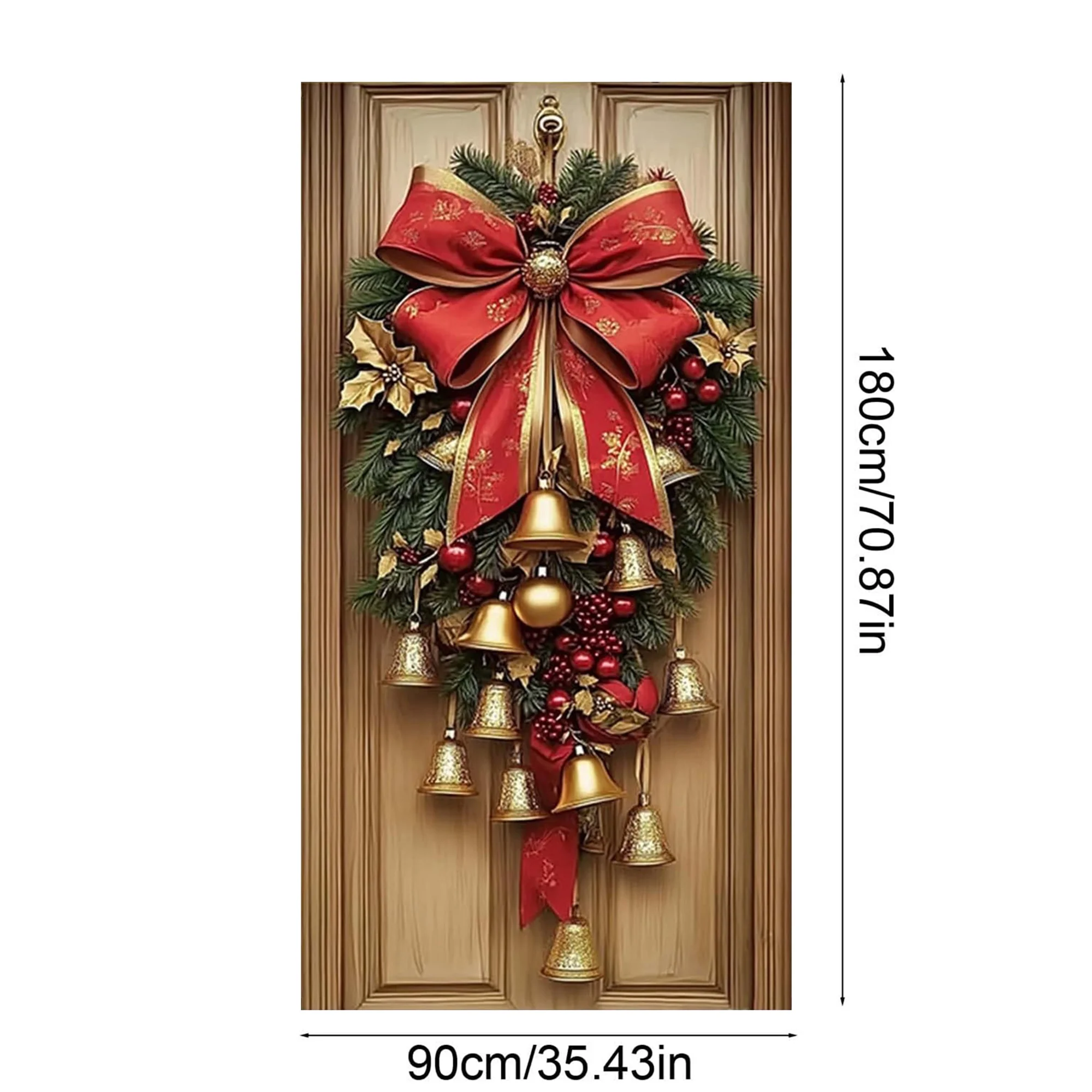 Christmas Door Covers for Front Door Decorative Bow Bell Berries Christmas Door Wraps, Christmas Door Decorations