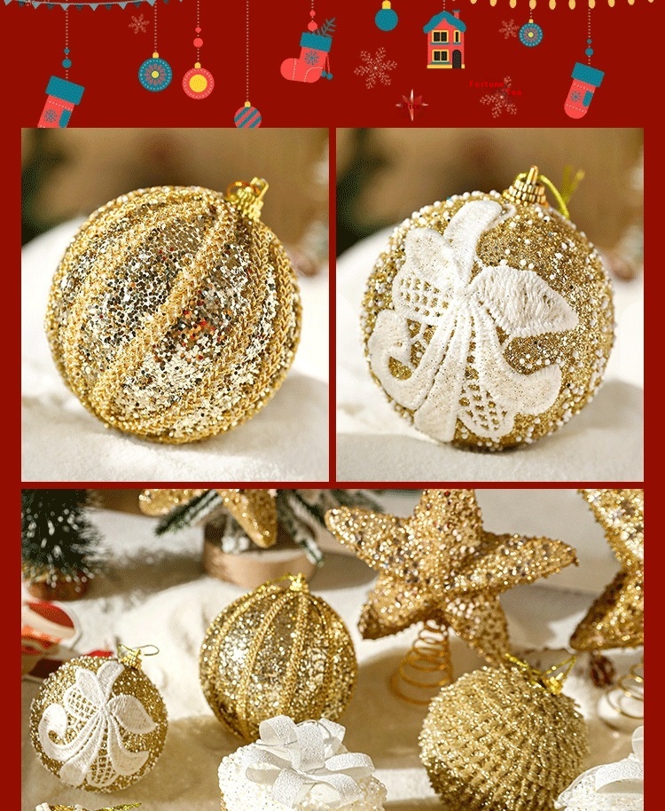 Color: 01 champagne series-golden gift bag, 02 champagne series-snowflake gift bag, 03 champagne series-crutch, 04 champagne series-XINGX, 05 champagne series-onion ball, 06 Champagne series-Watermelon Ball, 08 champagne series-pinecone, 09 champagne series-embroidered ball, 10 champagne series-tree-top star Small, 11 champagne series-tree-top star Large