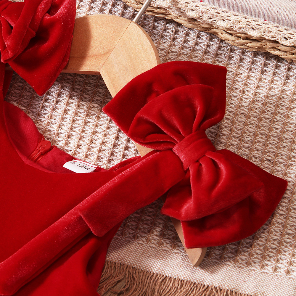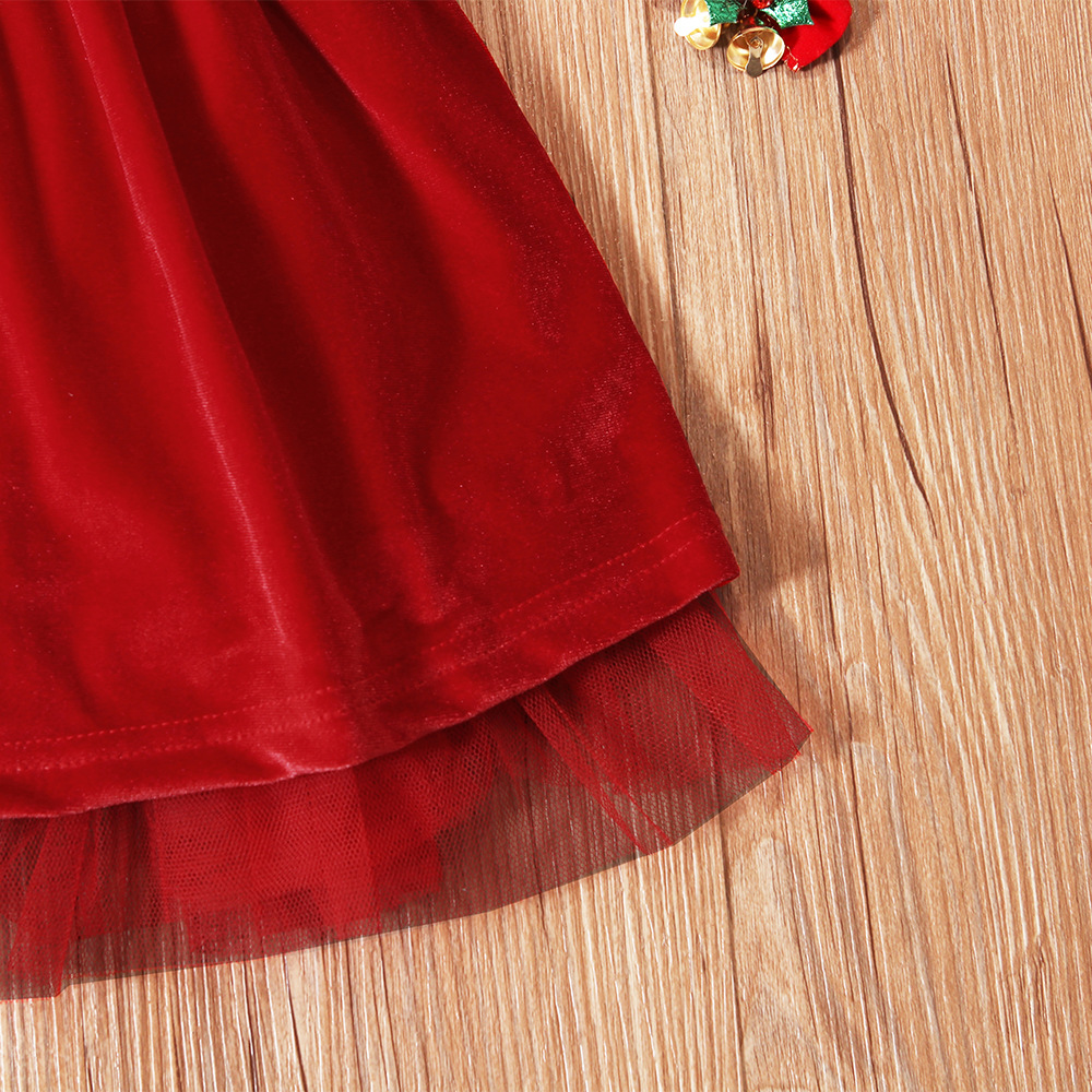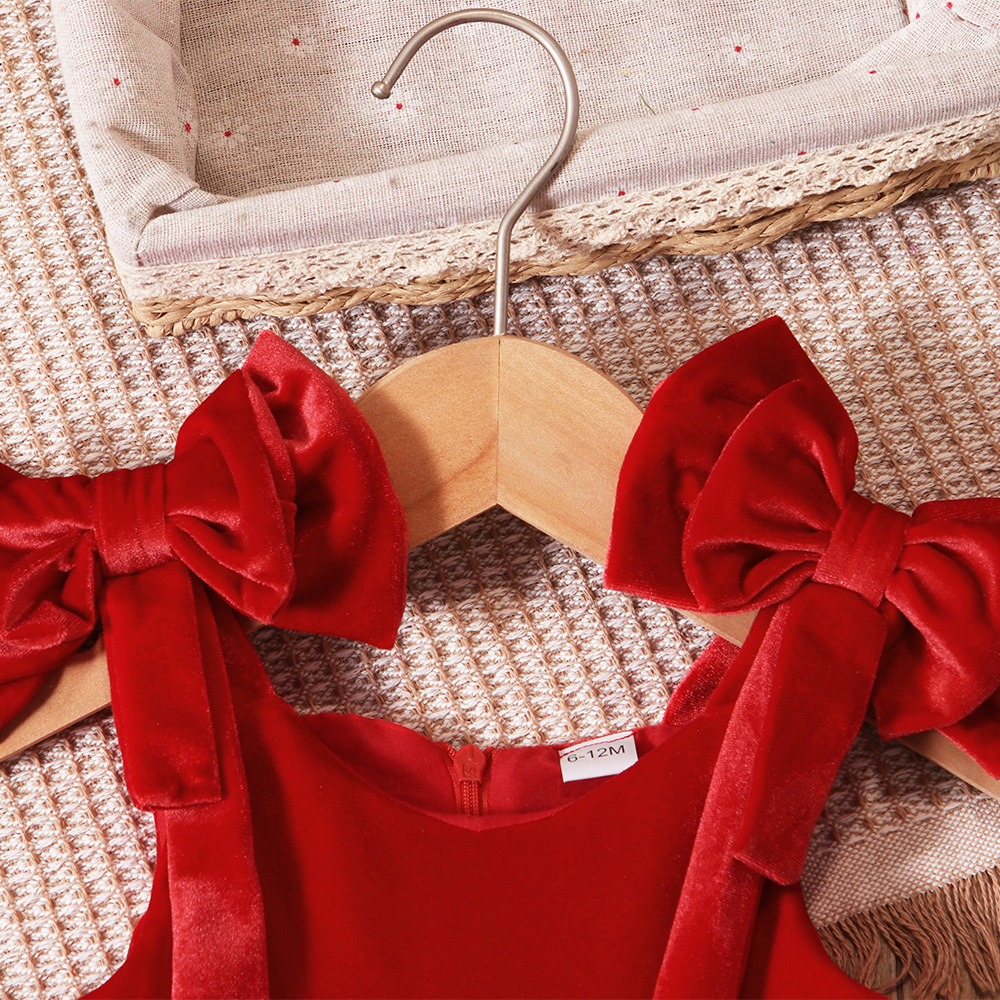 Girls' Christmas Bow Suspenders Bud Skirt Dress