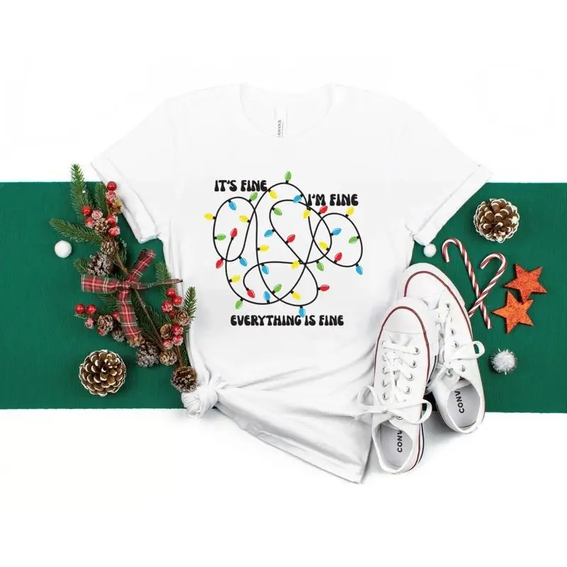 I'M Fine Everything Is T Shirt For Christmas Introverts Anxiety Xmas Tangled Light