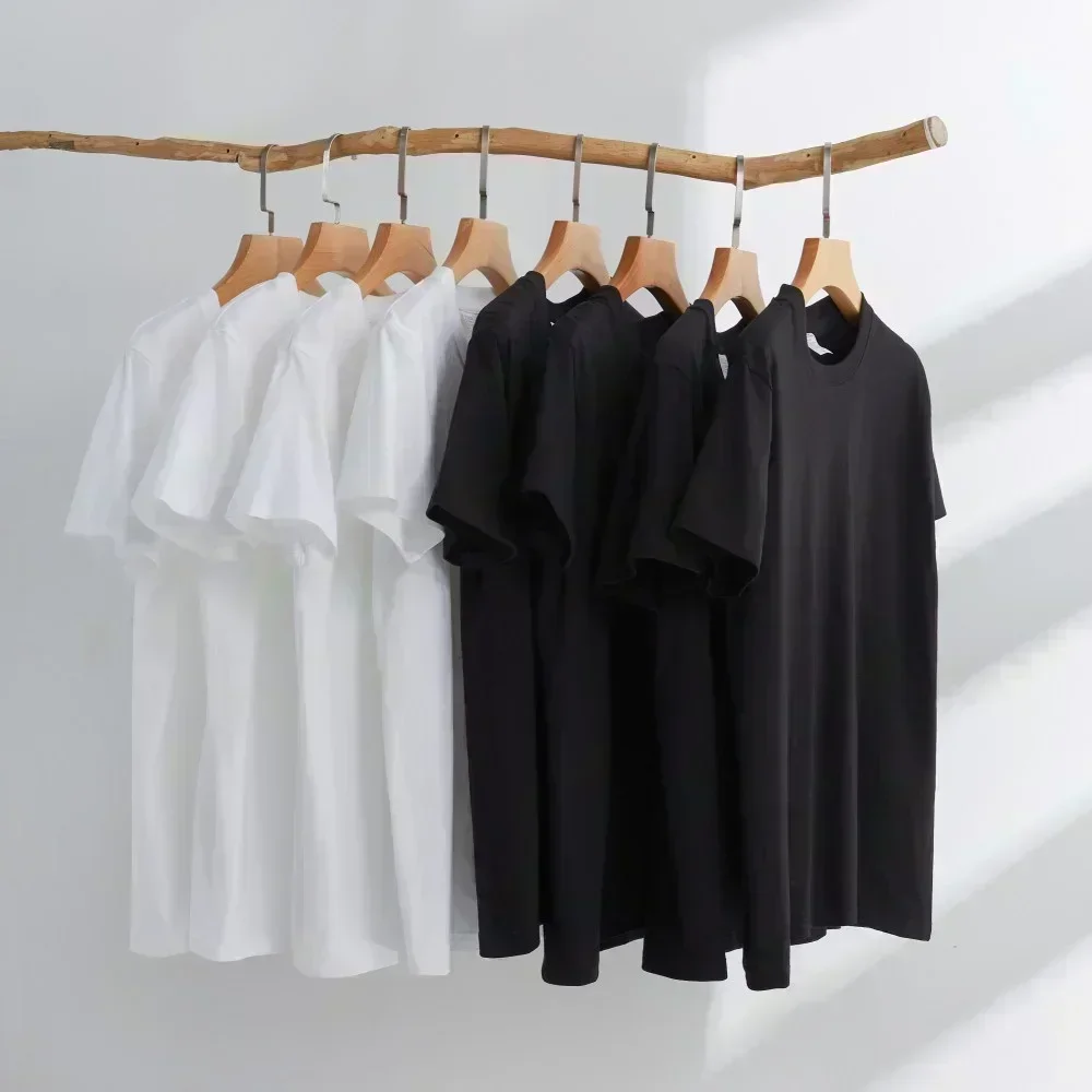 men male summer Cotton t shirt tops tees Clothing Clothes Streetwear Oversized Loose Casual high quality black white beige grey dark gray blue red yellow pink Oversized Trendy