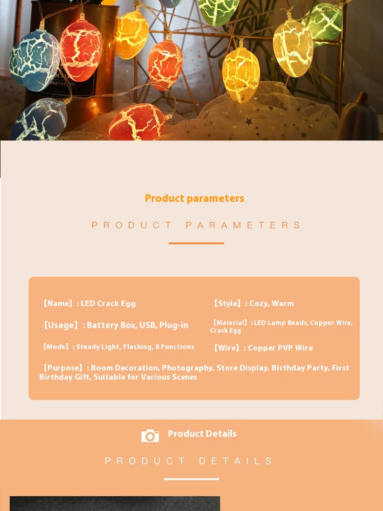Led Cracked Egg Lighting Chain Christmas Ornamental Festoon Lamp Resurrection