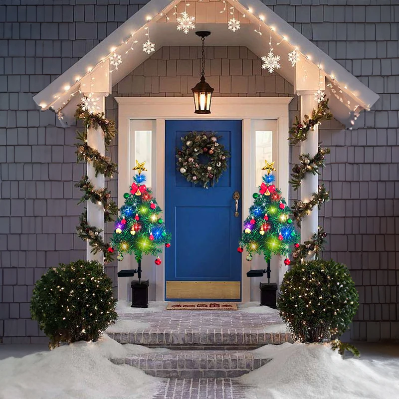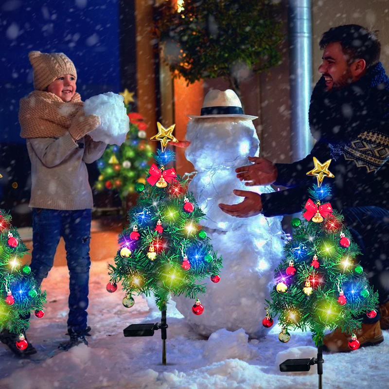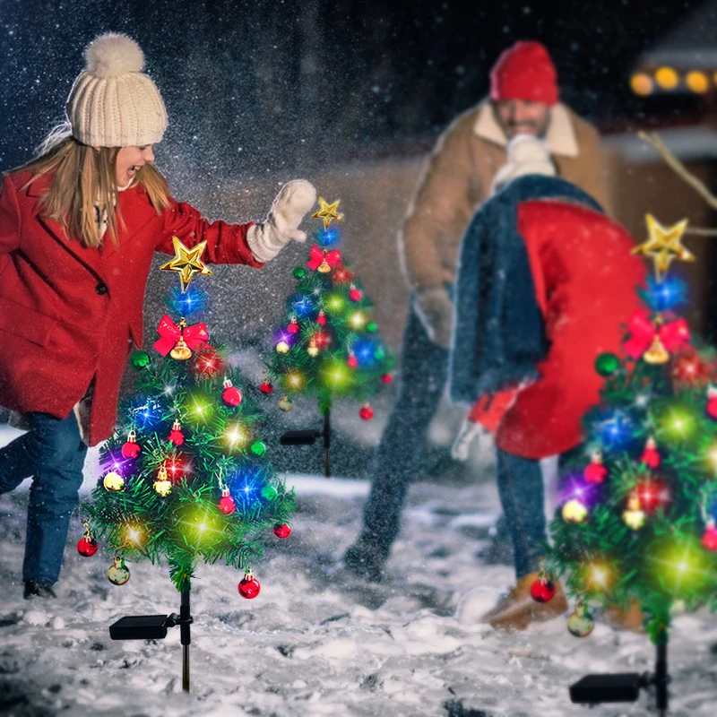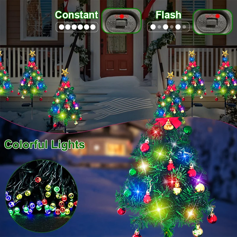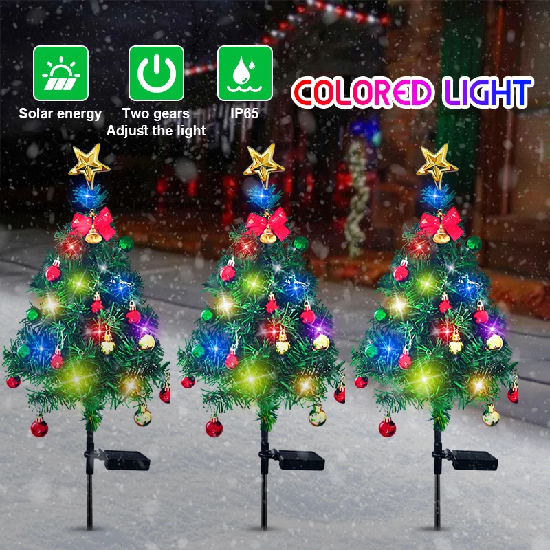 LED Solar Christmas Tree Decor Lights Outdoor Waterproof Garden Lawn Xmas Tree Stake Light For Pathway Yard Christmas Decoration