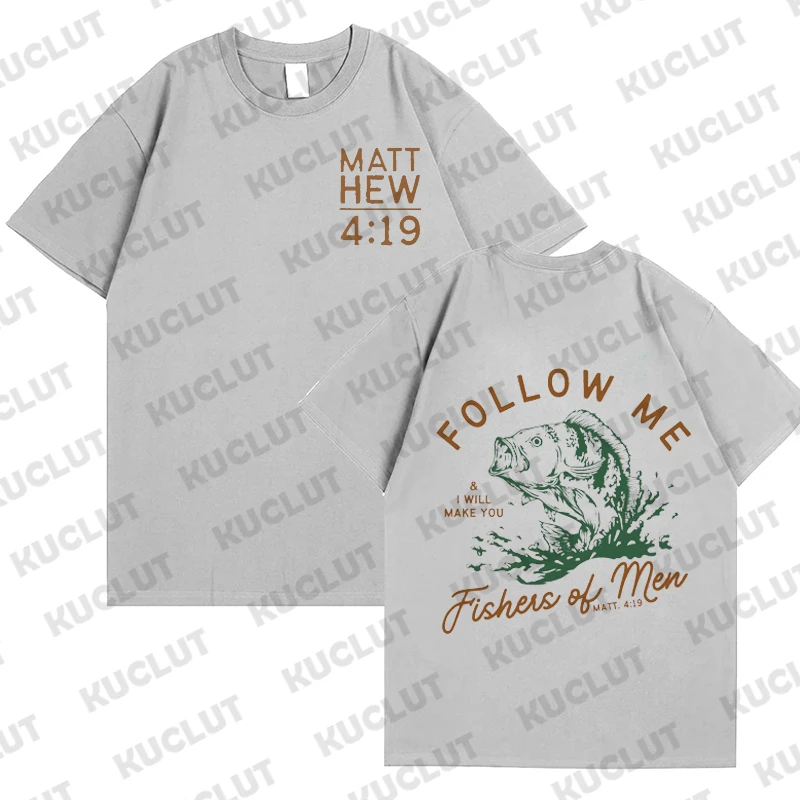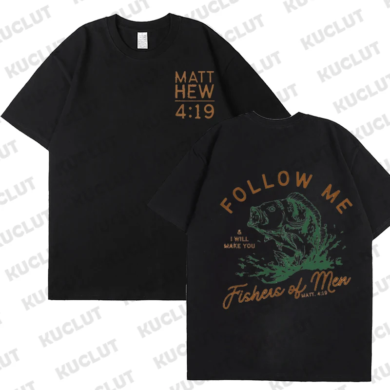 Loose Men T-shirt Summer Fishers of Men Print T Shirt Retro Christian Street Top Tee Vintage Christian Dad Men's Bible Clothing