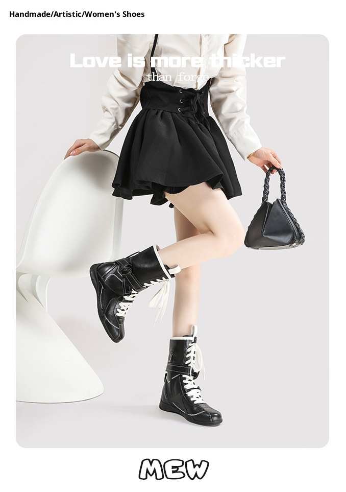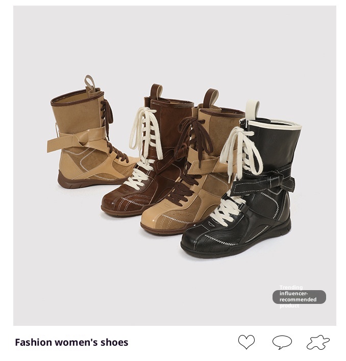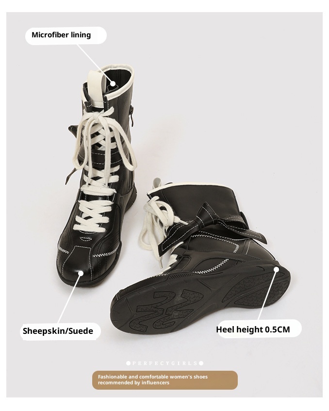 Retro Lace Up Boxing Boots Female Hight Increasing Martin Boots