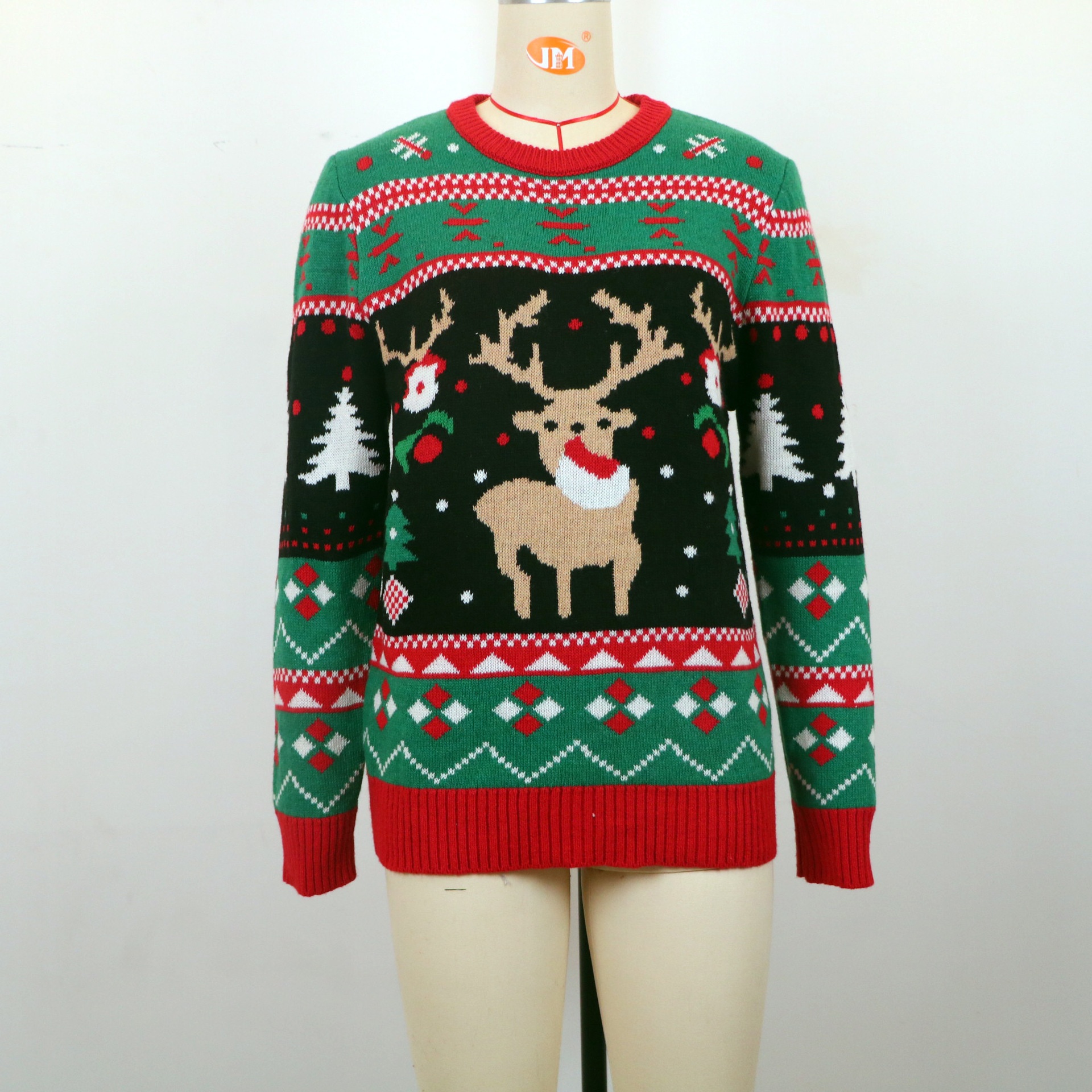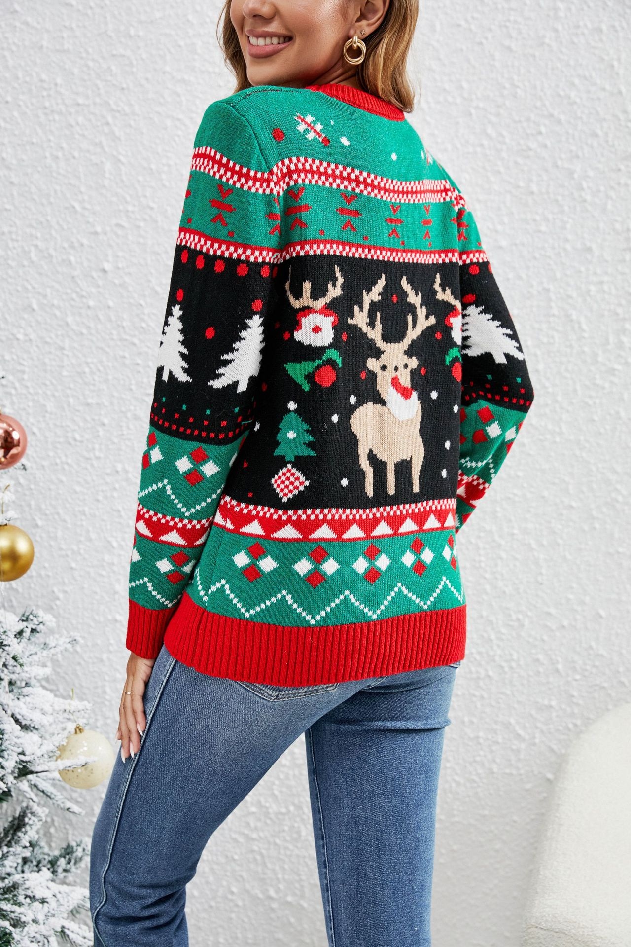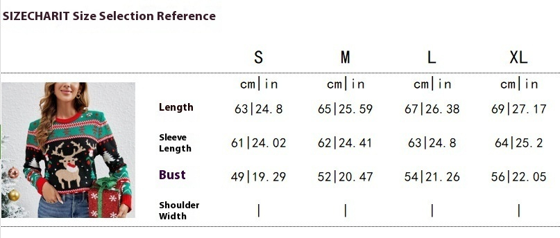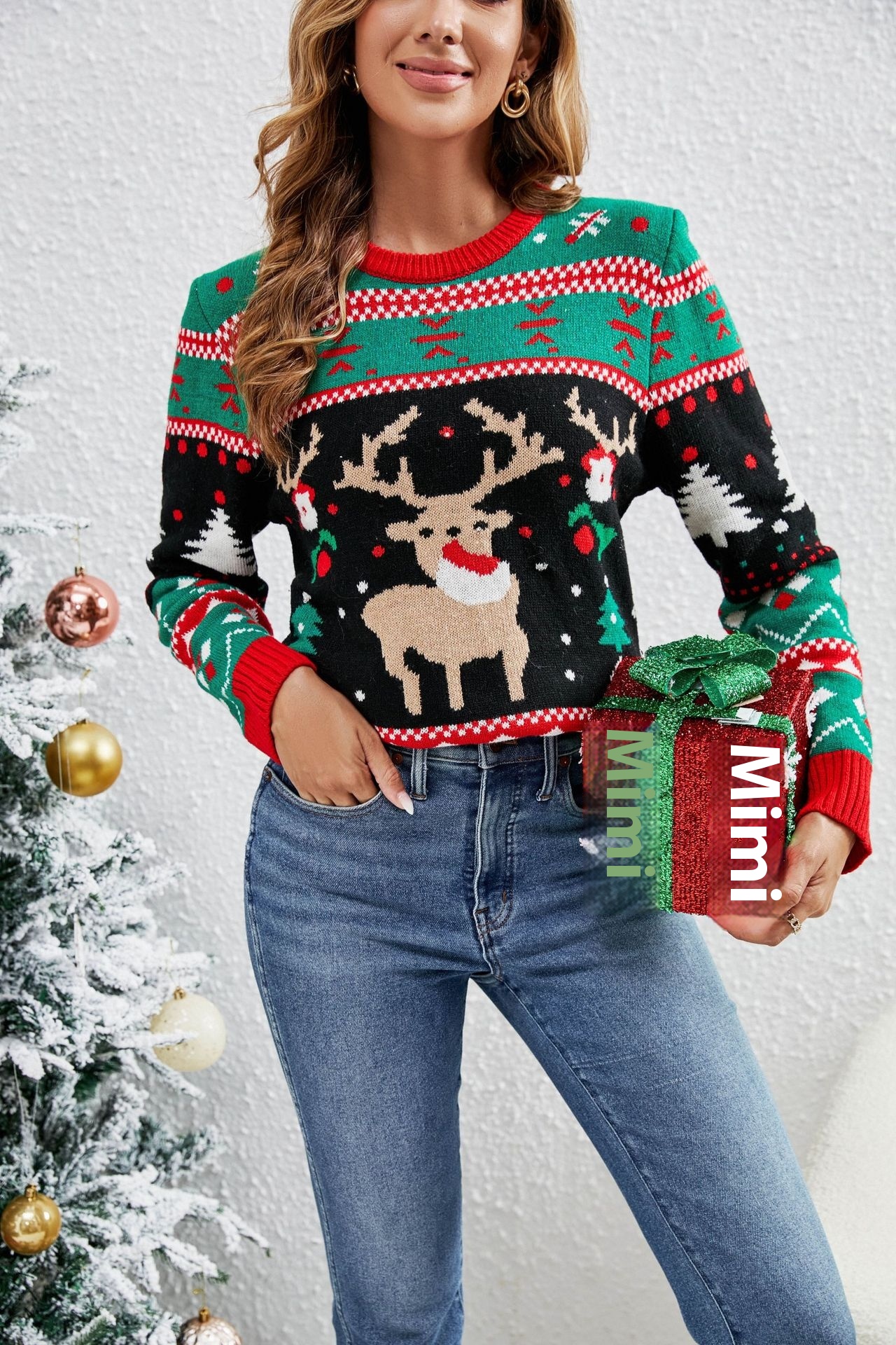 Women's Round Neck Jacquard Christmas Sweater Versatile Long Sleeve