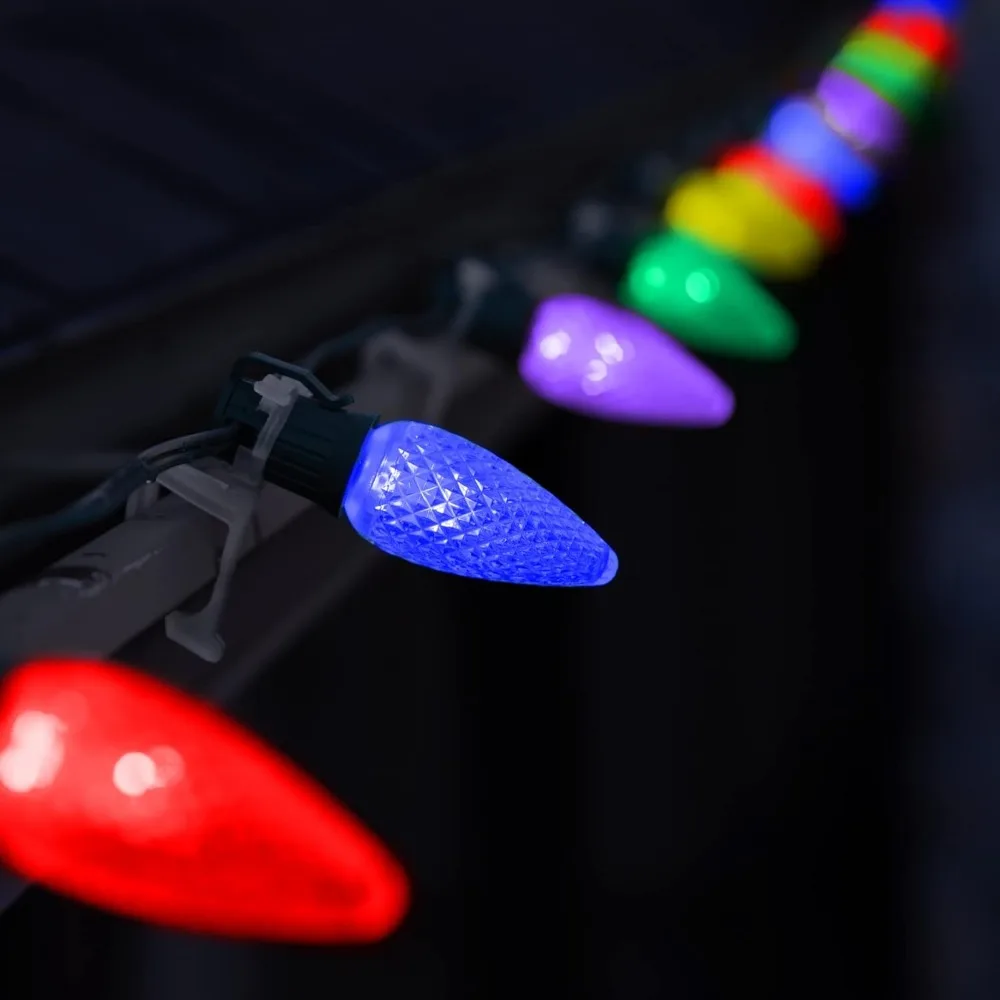 Enhance your holiday decorations with our high-quality LED C9 Christmas Lights, suitable for both indoor and outdoor use. These lights are designed to withstand various weather conditions and are shatter-resistant, perfect for festive gatherings and outdoor displays. Our C9 Christmas Light Bulbs feature a faceted design that adds elegance to the holiday spirit, and are available in a wide range of colors including Sun Warm White, Warm White, Cool White, Red, Orange, Yellow, Green, Teal, Blue, Purple, Pink, and Multicolor, allowing for numerous color combinations. Installation and replacement of these C9 LED Christmas Lights is simple, ensuring that maintaining your holiday display is easy and convenient. With their long-lasting performance, these C9 LED bulbs are built for extended use, ensuring your Christmas lights shine brightly for many seasons without the need for frequent replacements.